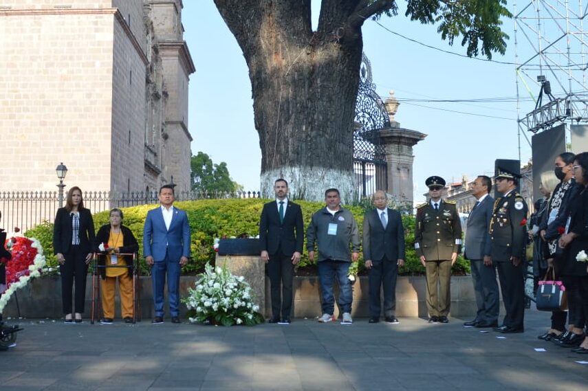Morelia, Michoacán.- Hoy, en el centro histórico, se llevó a cabo el acto de conmemoración en honor a los atentados ocurridos el 15 de septiembre de 2008.