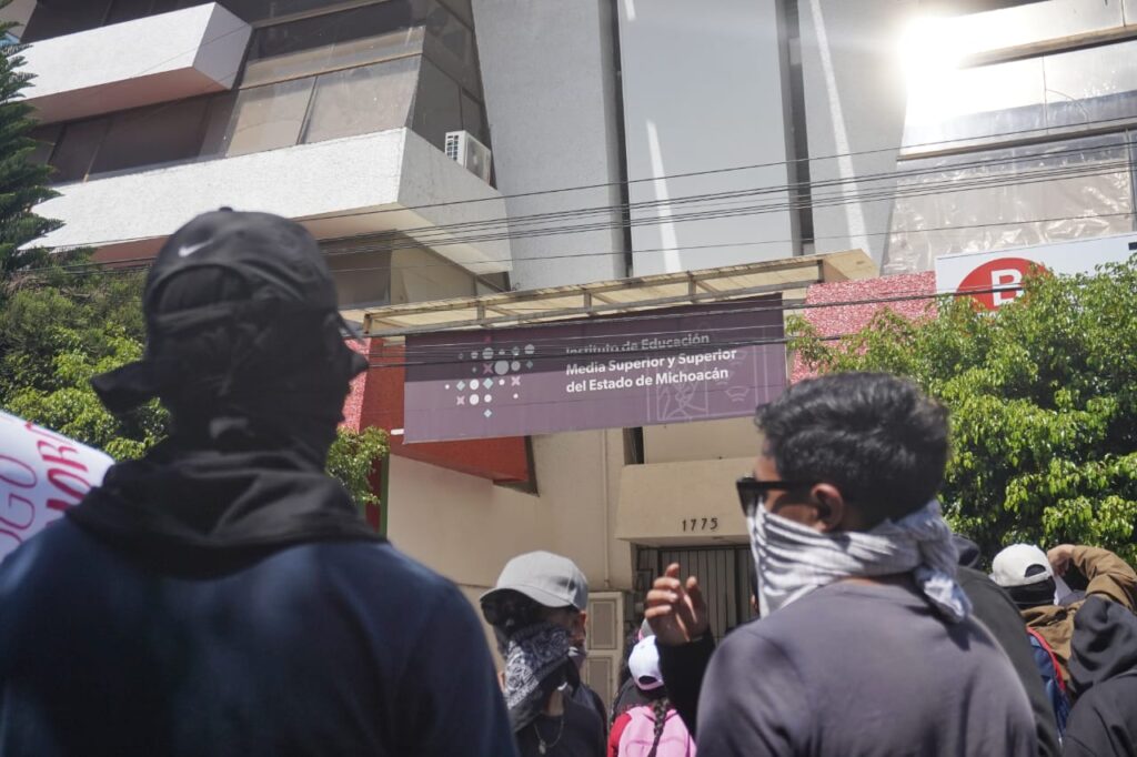 Morelia, Michoacán. – Al menos 6 normales, del estado de Michoacán, se organizaron fuera de las instalaciones del Instituto de Educación Media Superior y Superior del Estado de Michoacán (IEMSySEM), para solicitar una mesa de diálogo con Mariana Sosa, directora del Instituto.