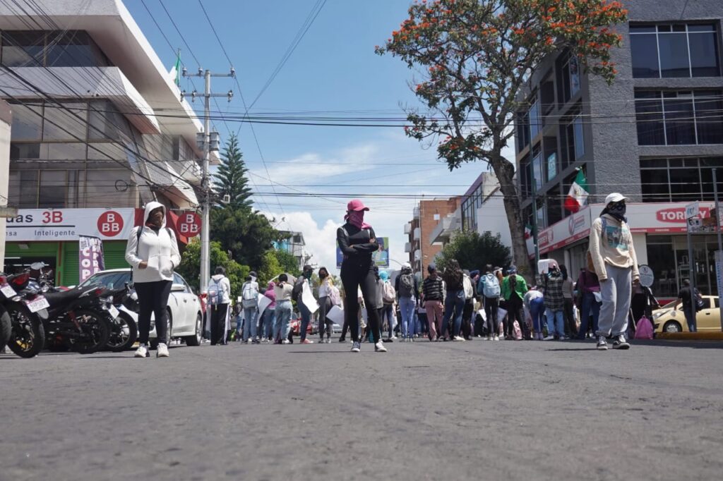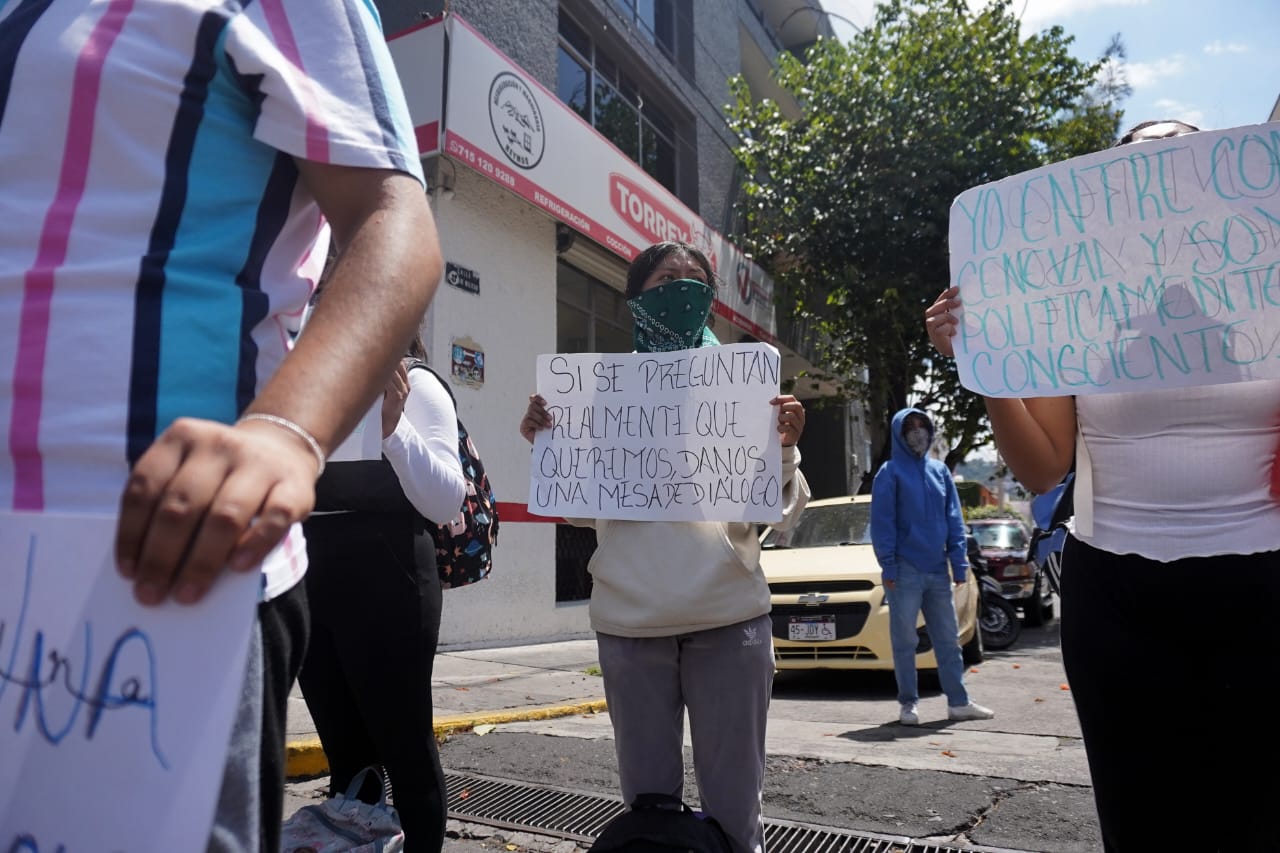 Con consignas y mantas, cerraron la circulación sobre la avenida Lázaro Cárdenas, pues según su pronunciamiento, piden una solución por el hostigamiento de docentes y directivos hacia la base estudiantil en las diferentes normales. Además del respeto de convocatoria a los directivos de la escuela de educadoras, pues señalan que estos fueron impuestos por el instituto.