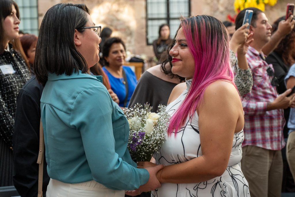 El matrimonio se concretó en el marco de la jornada de Bodas de la Diversidad Sexual y Reconocimientos al Cambio de Identidad de Género, realizada en el Centro Cultural Clavijero, un evento que, para ellas, significó algo más que un trámite. “Básicamente es solo una formalidad ya”, dicen, porque sus familias conocían su historia y las habían apoyado desde el inicio, tanto en la relación como en la decisión de formalizarla.