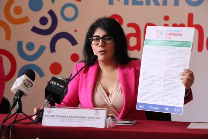 Morelia, Michoacán, a 21 de marzo del 2025.- La Comisión de la Niñez y la Adolescencia, a través de las diputadas Ana Vanessa Caratachea Sánchez y Grecia Jennifer Aguilar Mercado, presidenta e integrante de dicha comisión respectivamente, presentaron la convocatoria para participar en el Mérito Infantil “Sapirhaticheri” 2025, dedicado a destacar el esfuerzo, talento y compromiso de niñas y niños michoacanos.