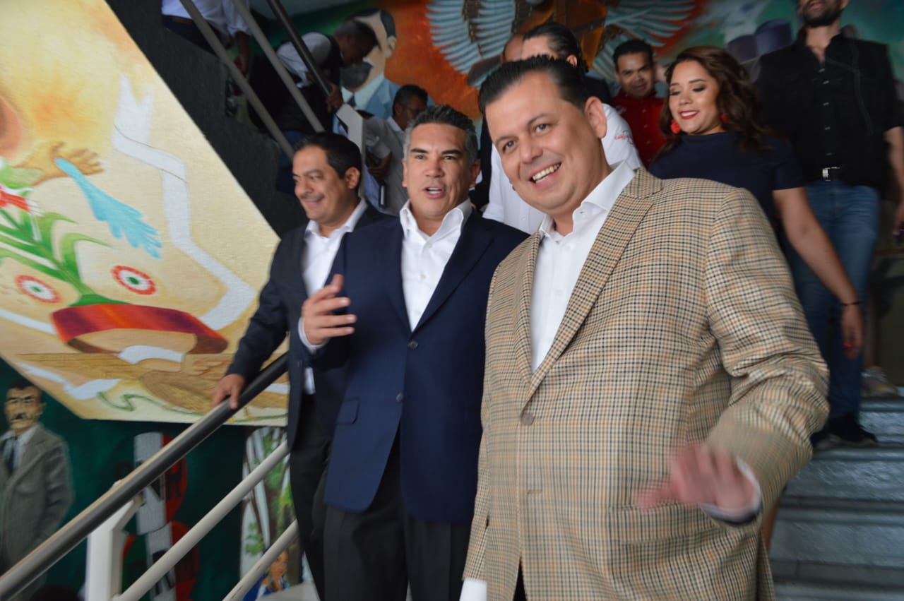 Con una hora de retraso, el diputado federal llegó a la sede priísta junto al dirigente estatal, Memo Valencia, porque, así les gusta que le digan.