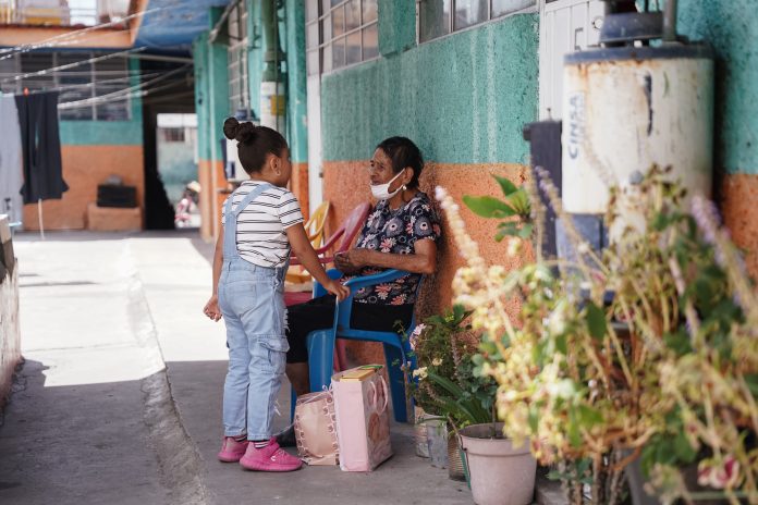 Hay niñas corriendo, risas breves, pasos que resuenan sobre el piso y una mujer de 86 años que observa desde una silla azul, a la sombra y junto a los lavaderos; su nombre es Genoveva, desplazada de la vecindad de fachada verde, y por cierto, vecina de la señora Lidia. Dice, que ella está agusto viviendo en una vecindad, aunque la renta le subió a 2 mil 500 pesos.