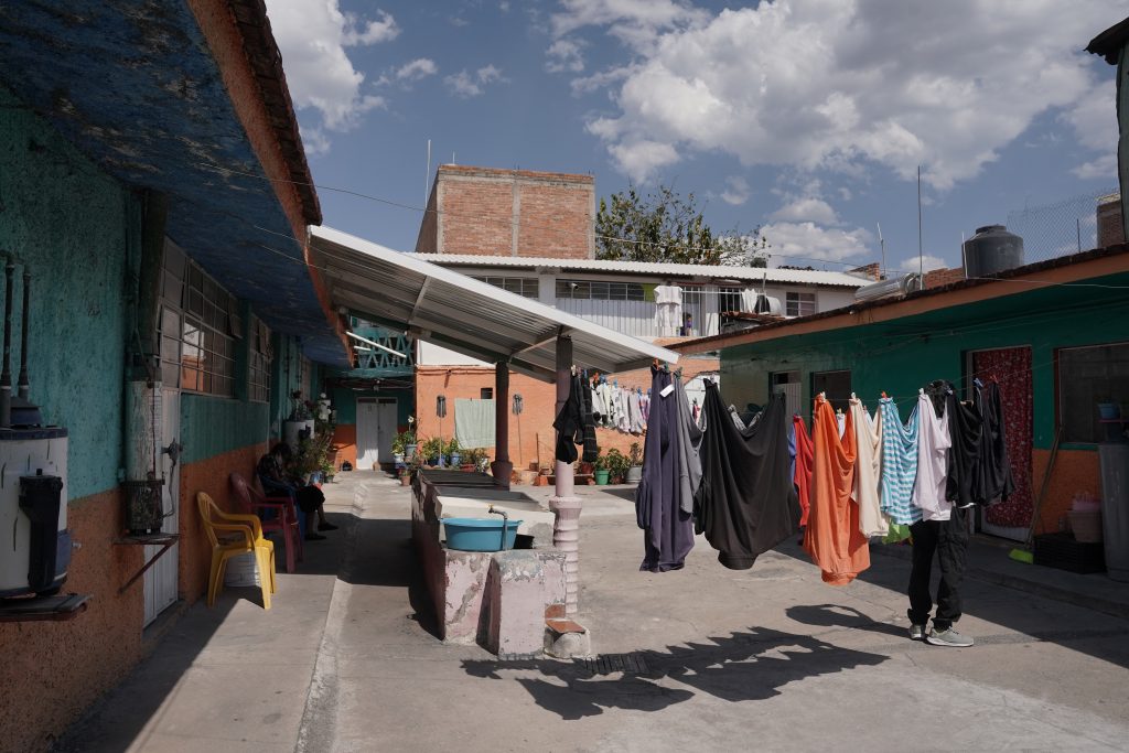 Irma Lorena López Morales abre la puerta de su cuarto, en esta vecindad, habita el número 15. Viene de Jalisco y lleva casi un año viviendo ahí. El espacio es reducido pero funcional: una cama, su tele, un altar, cosas personales, una pequeña cocina y un baño. Irónicamente, en la televisión de su cuarto un episodio de El Chavo del 8 acompaña la conversación.