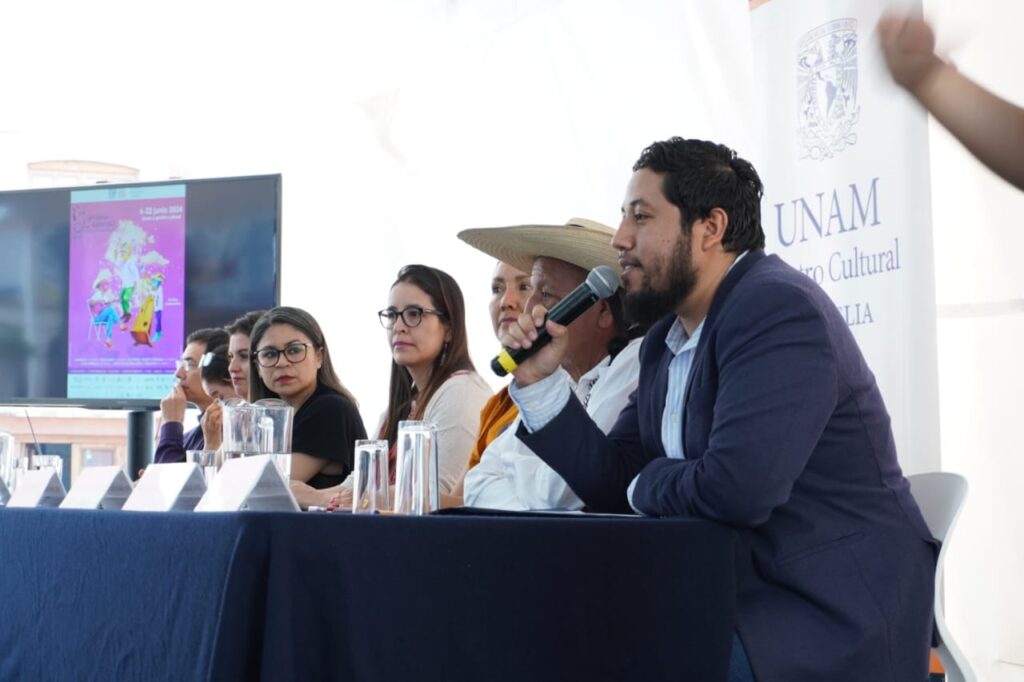 Morelia, Michoacán.- El Centro Cultural Morelia de la UNAM llevó a cabo la ceremonia de inauguración del 12vo. Encuentro de Música Tradicional “Verso y Redoble”.En un emotivo discurso, las autoridades del centro cultural expresaron su alegría por la realización de este evento, que este año lleva por título “Sones y Gestión Cultural”. Este encuentro rinde homenaje al trabajo de las y los gestores culturales en la promoción, divulgación y preservación de la música tradicional del son.