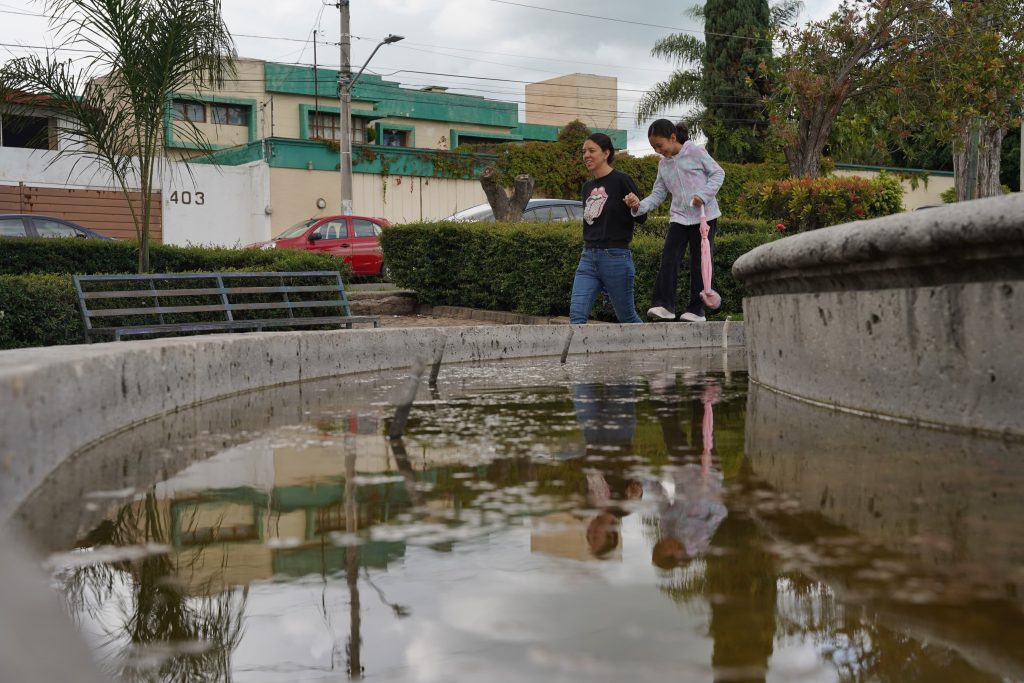 A la falta de agua en movimiento se suman otros signos de abandono: una jardinera funciona como basurero improvisado, con envoltorios, botellas y comida descompuesta. Entre los espacios, se alcanzan a ver ratas rebuscando entre los restos. Dicen los vecinos que es común ver en las banquetas cercanas cristales rotos, posiblemente de ” cristalazos”.
