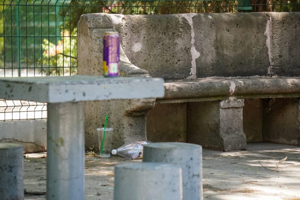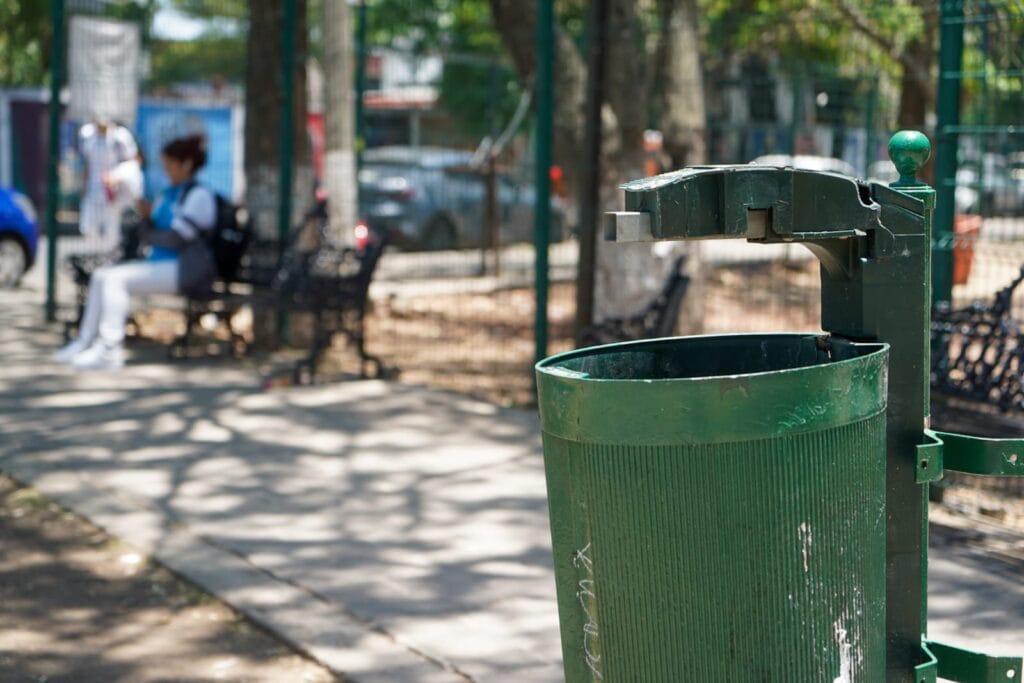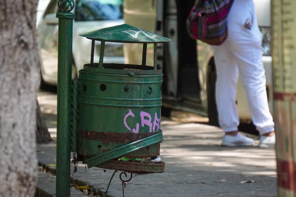 En las inmediaciones de este, se pueden observar tanto basureros en malas condiciones, incluso quemados y otros robados, hasta basura regada por las jardineras, con restos de comida que atraen a distintos roedores.