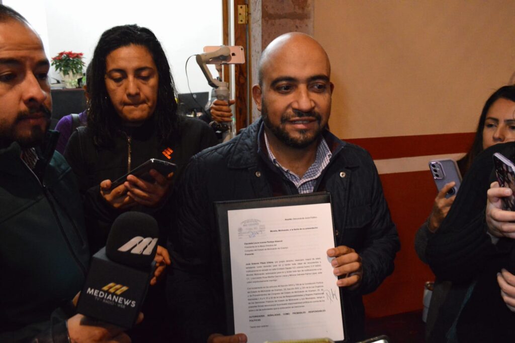 Morelia, Michoacán.-En una acción sin precedentes, este lunes 11 de diciembre del 2023, el presidente estatal de Michoacán Primero, Antonio Plaza Urbina, encabezó la entrega de una denuncia de Juicio Político contra diputados de la Junta de Coordinación Política (JUCOPO) que aprobaron de manera ilegal el acuerdo para mantener la designación de Marco Antonio Bravo Pantoja como Auditor Superior de Michoacán.