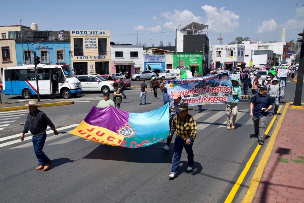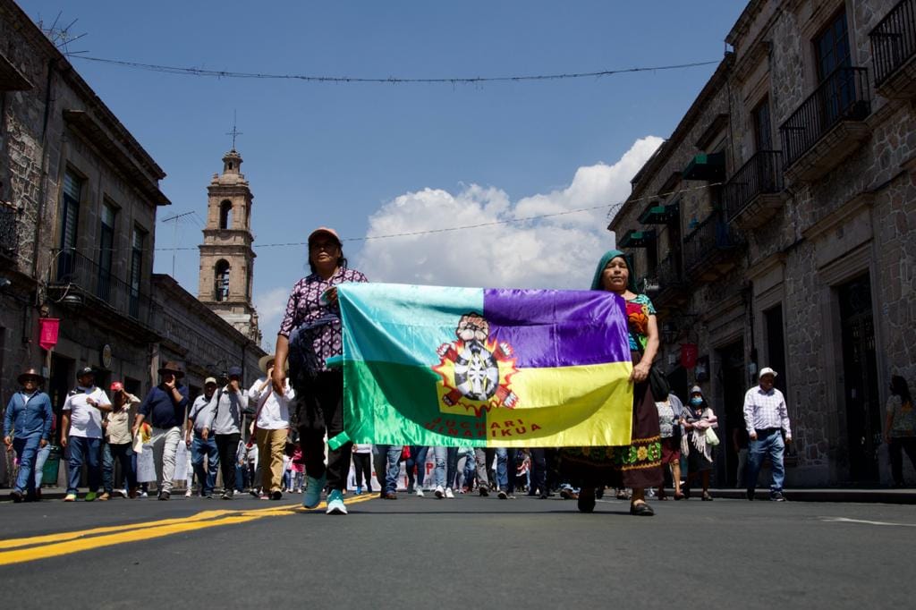 Morelia, Michoacán.- En las inmediaciones del monumento a Lázaro Cárdenas se congregaron integrantes de comunidades indígenas, que marchan hasta el congreso exigiendo el reconocimiento y autonomía del auto gobierno en el código electoral, a decir del abogado Orlando Aragón del colectivo emancipaciones habla de que se armonice el código electoral a los derechos que ya tienen reconocidos los pueblos y las comunidades indígenas.