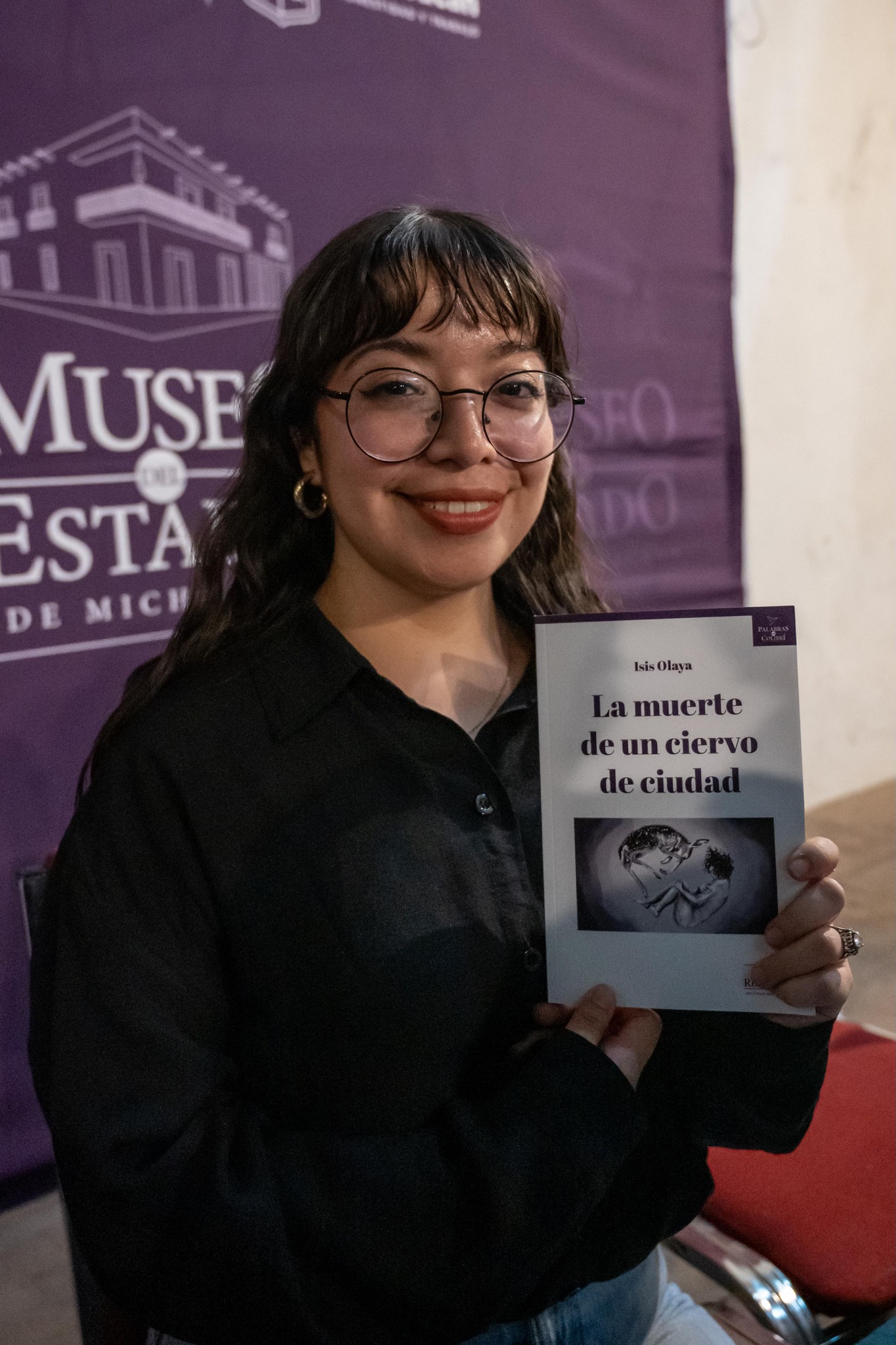 Morelia, Michoacán.– Un ciervo aparece muerto en una ciudad. No pertenece ahí. No debería estar ahí. La imagen es incómoda, extraña, casi absurda. De esa escena parte La muerte de un ciervo de ciudad, el libro con el que la zitacuarense Isis Olaya ganó la convocatoria Palabras de Colibrí 2025 en la categoría de poesía y que fue presentado en el Patio de la Magnolia del Museo del Estado de Michoacán.