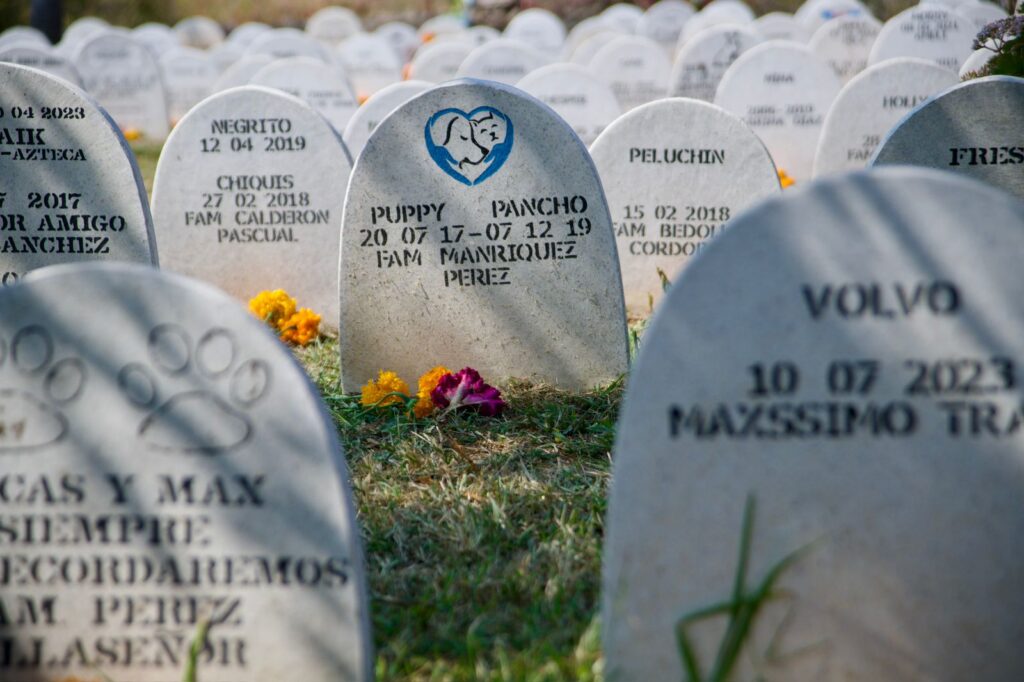 Cada lápida es distinta, algunas solo con el nombre, otras con una huellita marcada, o una imagen del lomito o michi; entre todas ellas nos encontramos la de Burbuja, una perrita que durante 17 años fue más que la mascota de Paola, que platica que para ella fue parte de su familia durante tantos años y una compañera inseparable, incluso en las largas noches de estudio, en las cuales Burbuja permanecía a su lado acompañándola.