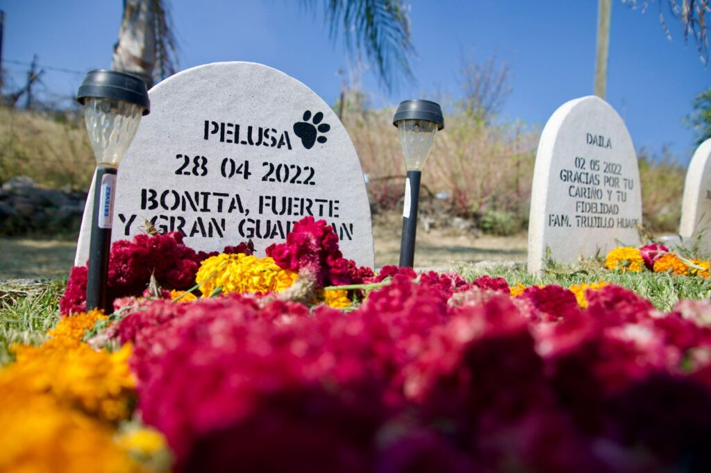 Anabel Tapia también acude al cementerio de mascotas, en compañía de sus hijos, para entre todos adornar la tumba de sus lomito Romina y pasar un rato ahí con ella, mencionando que desde 2019, acuden el primero de noviembre para continuar con esta tradición. Anabel es rescatista independiente de lomitos en Cuitzeo y menciona que en su familia tienen mucho amor por los lomitos tanto, que al partir Romina para honrar su memoria, decidieron sepultarla. “Para nosotros son parte de nuestra familia, desde el primero que tuvimos han sido miembros de la familia y les hacemos este pequeño tributo para que sepan que no los hemos olvidado”.