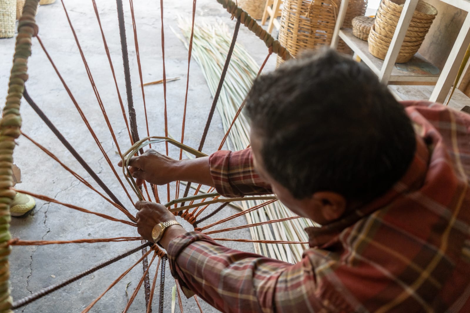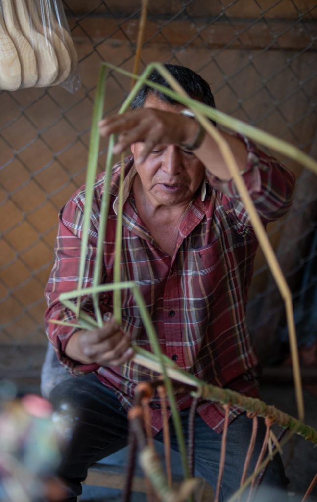 Entre fibras de tule, carrizo y años de práctica, Jorge sigue haciendo lo mismo que aprendió de joven: tejer con paciencia, como si cada pieza guardara una parte de su propia historia.