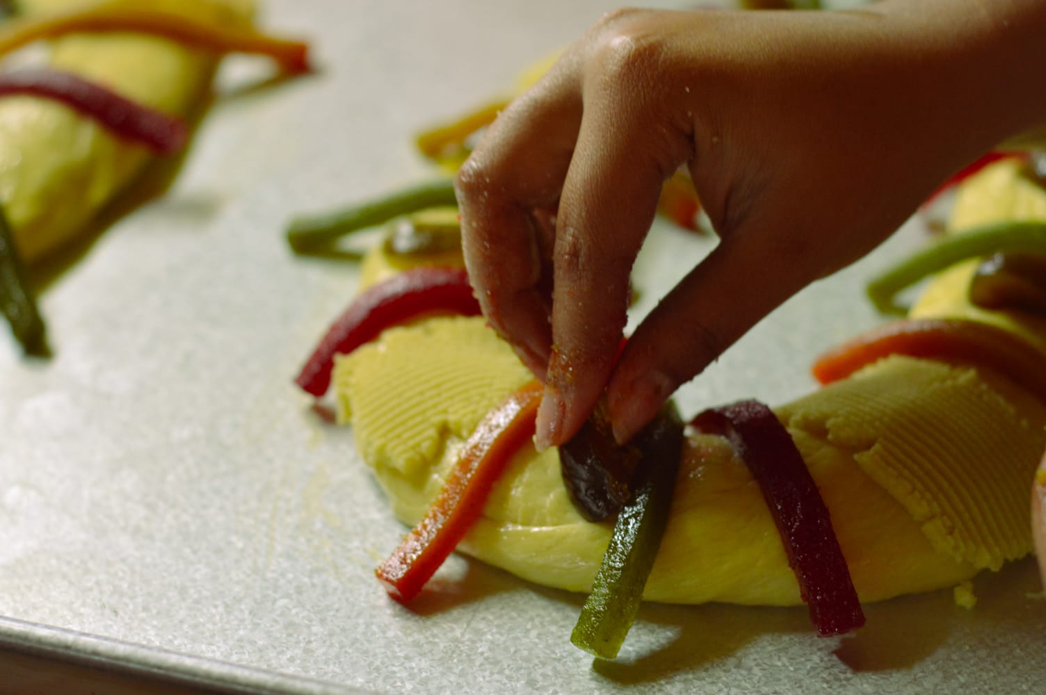 La elaboración de las roscas de reyes en “La dulce vida” comienza con ingredientes de primera calidad. La masa, elaborada con harina seleccionada, huevos, azúcar y mantequilla, se convierte en el lienzo perfecto para una cuidada elección de frutas cristalizadas e higos. Además, no puede faltar el toque final, las tradicionales figuras de plástico que se esconden dentro de la rosca.