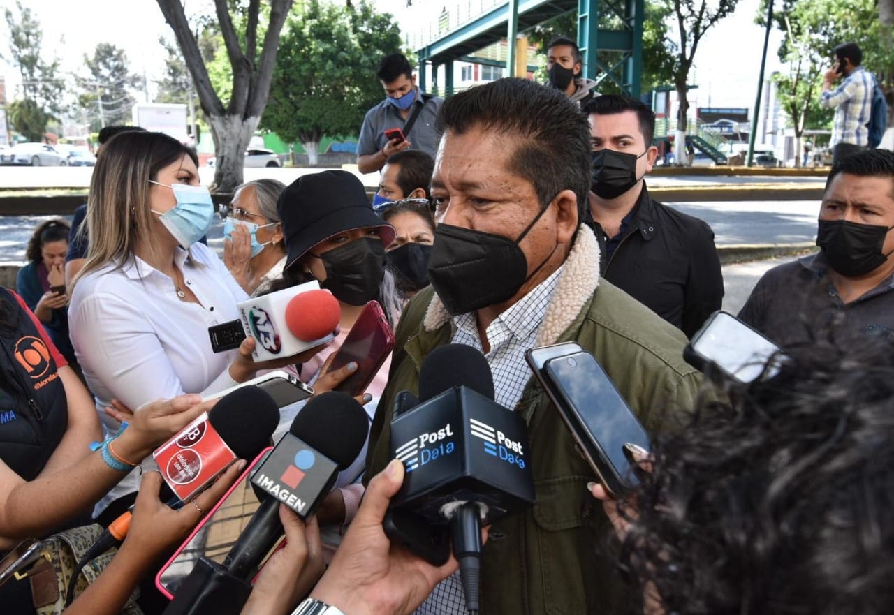 Benjamín Hernández Gutiérrez Secretario General de la Sección XVIII de la SNTE-CNTE Poder de Base ofrece rueda de prensa, mantendrán toma indefinida de Pensiones Civiles por falta de pago a los maestros estatales.