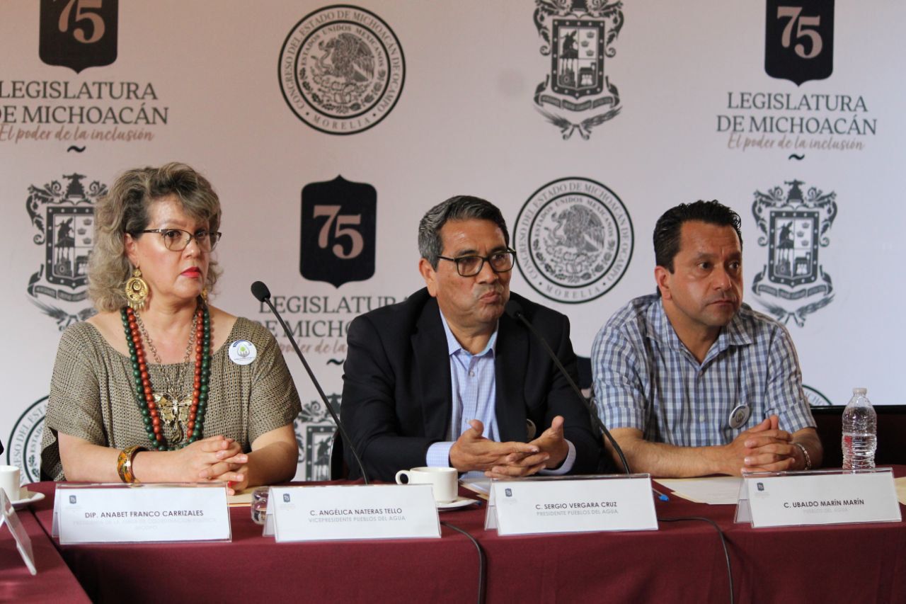 Morelia, Mich.- Rueda de prensa presentada en el salón de recepciones del Palacio Legislativo, por parte de la Mesa Directiva del Consejo del Agua AC, dueños y titulares de Bosques del Oriente de Michoacán y productores del agua que conduce el acueducto de Cutzamala.