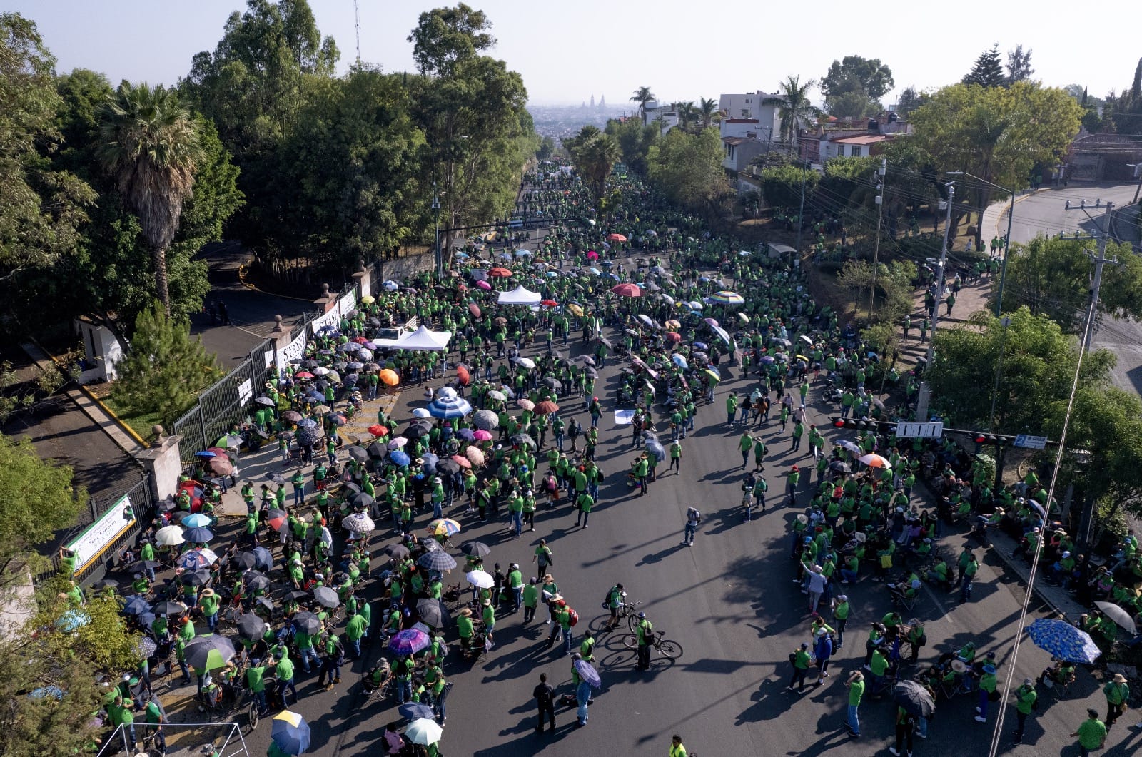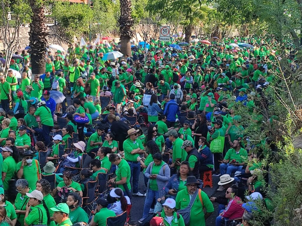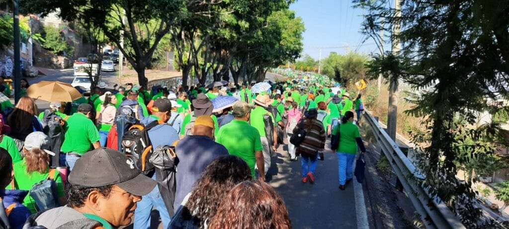 Con sus tradicionales camisetas verdes de trabajadores del sindicato STASPE partieron de distintos puntos y llegaron a Casa Michoacán, epicentro del problema.