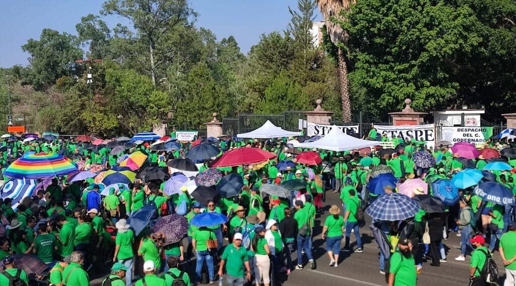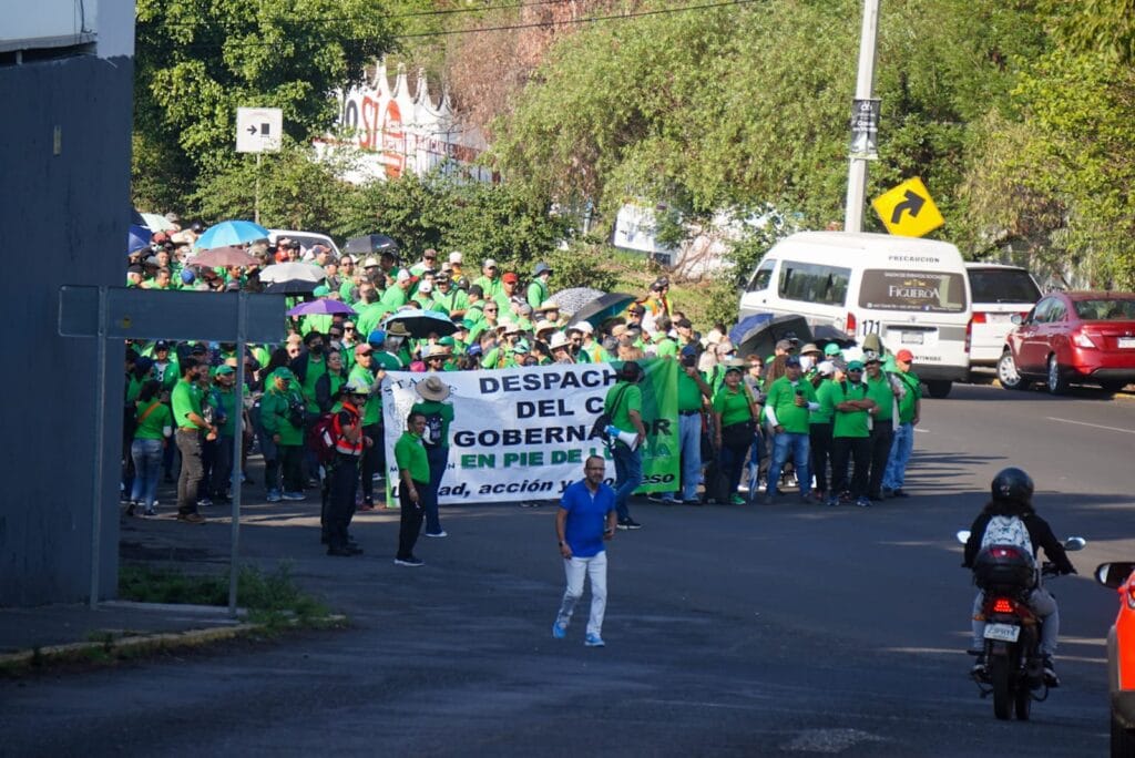 El movimiento inició alrededor de las 8 a.m. con pancartas y consignas que provocaron congestión vehicular en las calles aledañas. El sindicato STASPE de Michoacán exigien un mejor trato para los trabajadores sindicalizados