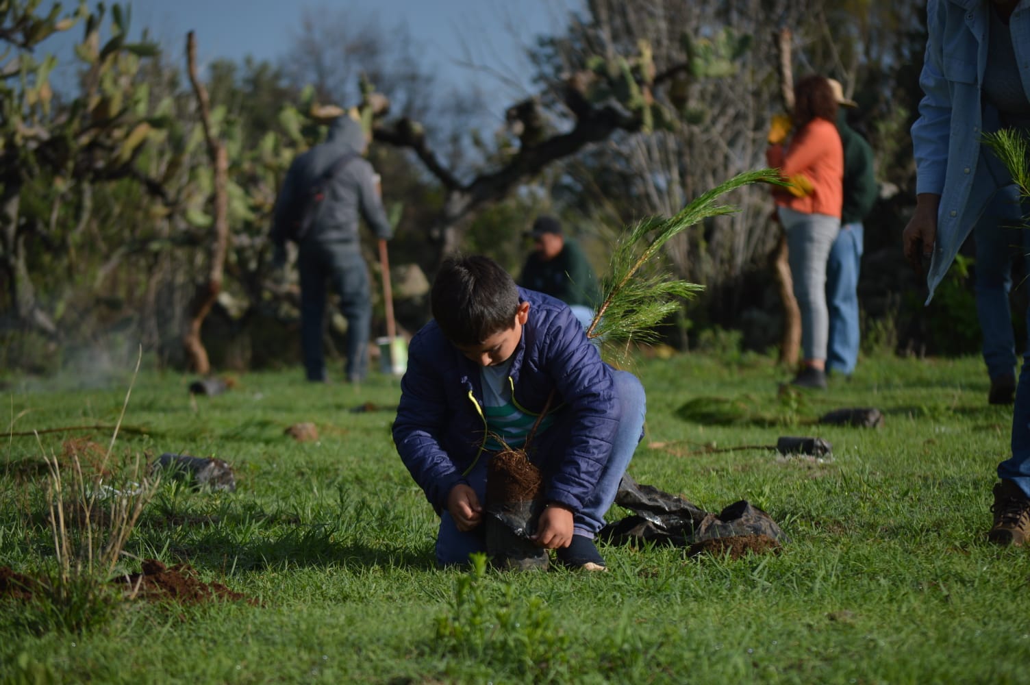 Entre padres de familia, niños y jóvenes de diferentes regiones comenzaron a realizar excavaciones lo suficientemente profundas para que los pinos en un área aproximada de 5 hectáreas.