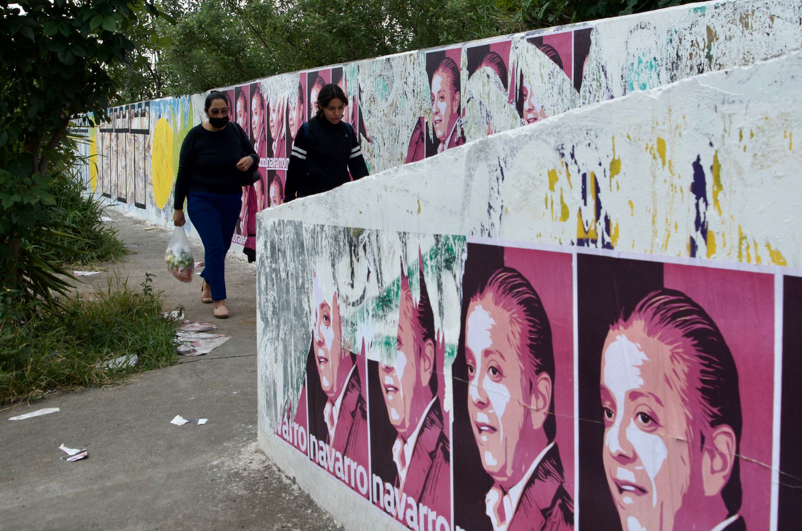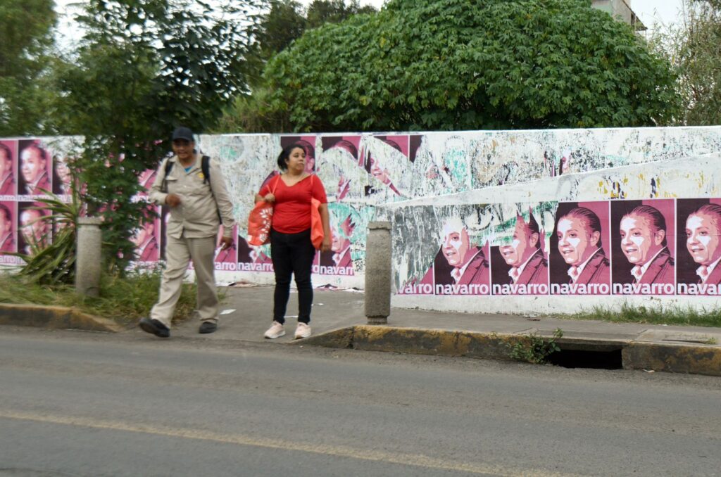 En la Av. Río Grande, en la zona de la mencionada colonia, la barda que está a un costado del río se encuentra llena de carteles con la imagen de Navarro y pintas de diferentes figuras políticas estatales y federales.